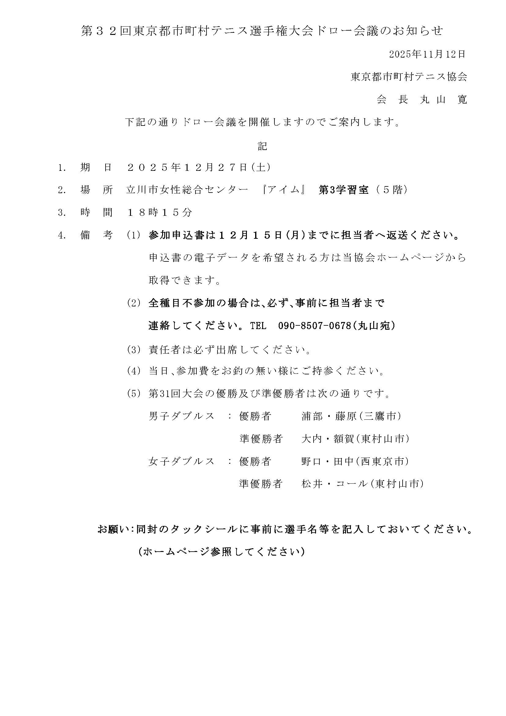 5.その他:試合開始時間、会場等は、後日「青梅市テニス協会ホームページ」に掲載されます。